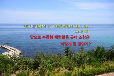 연안사고예방법과 한국수중레저연합회의 출범, 집회, 그리고 시위,앞으로 수중형 체험활동 규제 조항은 어떻게 될 것인가? 그간 개정을 이유로 시행이 보류되었던 연안사고예방법이 이번 6월 1일부터 전면 시행되었다. 해양경비안전본부(구 해경)는 이 법의 시행령과 시행규칙 제정 이후로 논란이 되었던 내용을 이제는 대부분 개정했다고 판단한 것이다. 그러나 수중형 체험활동과 관련된 ...