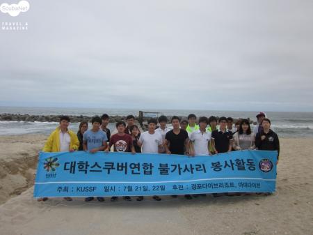 한국대학스킨스쿠버연합(이하 KUSSF,의장 조영준 강사)은 지난 7월 21일과 22일 이틀에 걸쳐 강원도 경포 근처 해변에서 2012년 하계 수중 및 해변정화활동을 실시하였다. KUSSF는 대학생들에게 스킨스쿠버 다이빙을 보급하고 홍보하기 위해 서울, 경기 지역의 13개 대학교(강남대, 건국대, 경기대, 경찰대, 경희대, 광운대, 국민대, 명지대, 세명대, 세종대, 숭실대, 이...