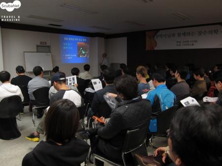 4월의 마지막 주 금요일, 다이버들이 모여 “불금”을 보내고 있는 현장을 찾았다. 다이버스몰에서 주최한 잠수의학 세미나는 안전한 다이빙에 대해 배우고 싶어 하는 다이버들의 열기로 뜨거웠다. 평일 저녁 7시, 다소 외곽인 다이버스몰의 위치에도 불구하고 세미나가 시작하기 전에 준비된 자리는 거의 만원이었고, 중간 중간에 의자가 추가로 배치됐다. 다른 세미나 때보다 참가인원을 넉넉히...