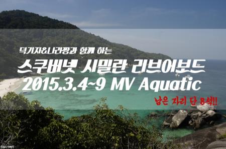 리노베이션을 마치고 첫 시즌을 맞은 M/V Aquatic의 스쿠버넷만을 위한 놀라운 프로모션!씐나게 다이빙하고, 재미있게 놀고, 맛난 거 먹고!! 아름다운 바다에서 멋지고 즐거운 추억을 함께 만들어요~ ^0^ 스쿠버넷의 덕기자와 나라짱이 함께하는 투어입니다! [일정] 2015년 3월 4일~9일 (리브어보드 4일, 다이빙 총14회)[항공]- 아시아나/대한항공/타이항공 이...