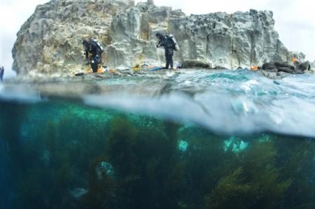 이운철의 제주바다 이야기 문섬 모자반 숲모자반이 피어 있는 새끼섬 벽에서 입수를 준비하는 다이버들 육지에 꽃 소식이 한창인 4월 중순에 다이빙 일번지인 문섬을 찾았다. 전 주까지만 해도 한낮에는 기온이 20℃를 넘나들었지만 날씨가 흐려서 인지 기온이 좀 내려갔다. 하지만 서귀포 항에는 이미 다이빙 시즌이 시작된 듯 문섬으로 나가는 다이버들이 유어선에 장비를 옮겨 싣고 있었다. 보트 다이빙을 전문으로 하는 레저선박도 다이버들을 싣고 포인트로 ...