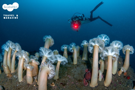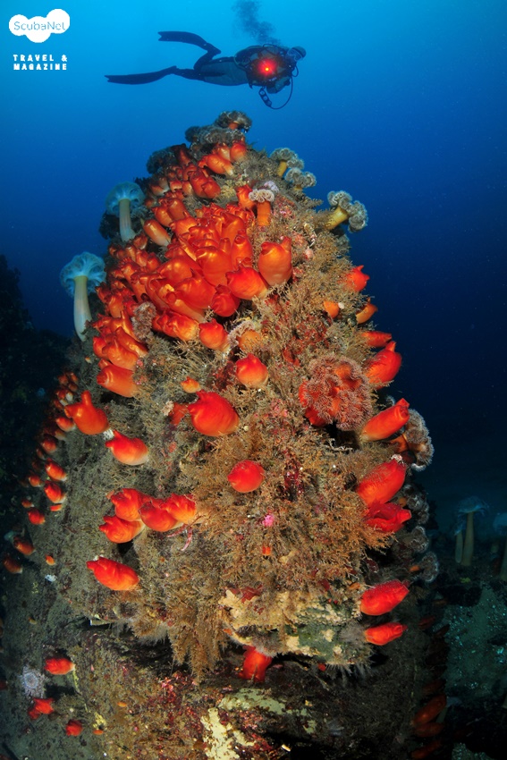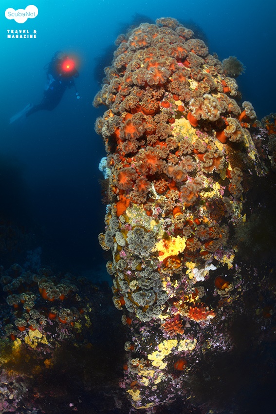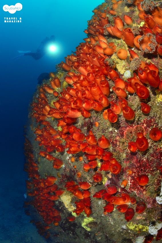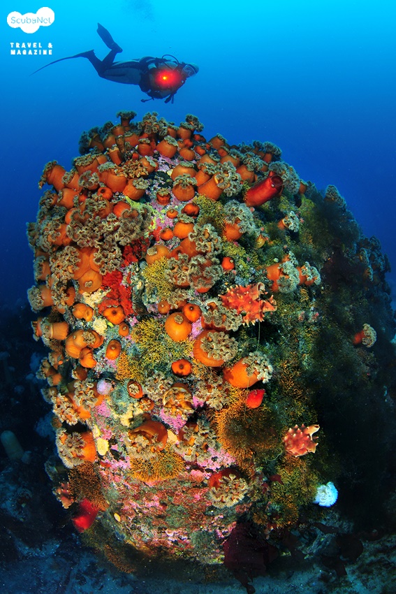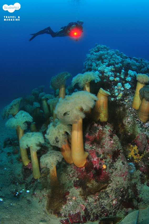 섬유세닐 말미잘은 아예 얕은 곳의 그늘진 곳이나 다소 깊은 곳에서 형형색색의 흡사 꽃동산을 연상케 하는 군락을 이루며 시간을 빼앗고, 솟아오른 암반들에는 커다란 비단멍게들이 군락을 이루어 풍요로운 자연의 모습을 느끼게 한다. 마치 낙타등 마냥 희미하게 뒤로 보이는 또 다른 봉우리들은 다이버들의 호기심을 한껏 자극하여 그곳에는 또 무엇을 만나볼 수 있을까 하는 기대감을 불러 일으킨다.