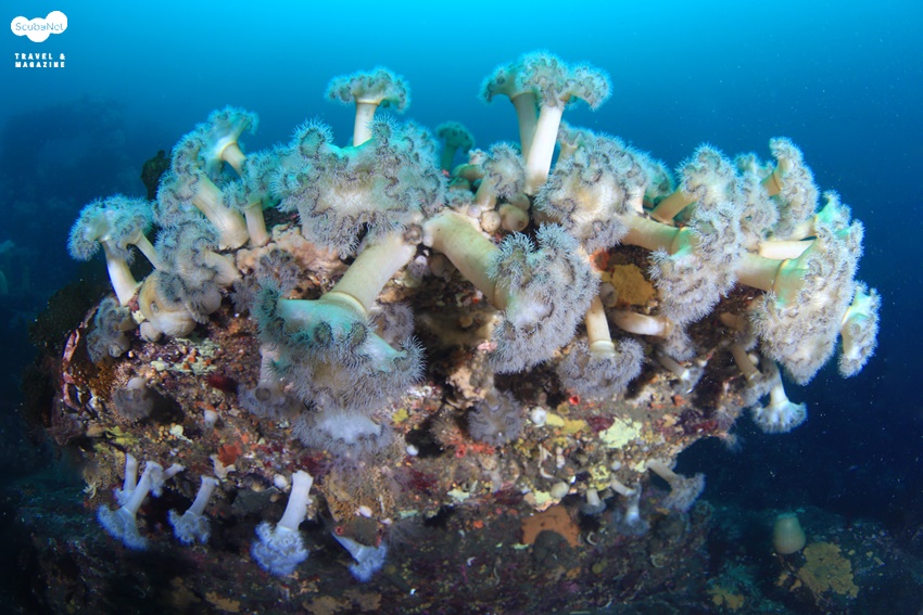 텍 장비들 다이빙 포인트가 자연암반과 인공어초가 적절히 섞여 있으며, 20m 이내의 초보자들을 위한 포인트와 20m 이상의 어드밴스드급 포인트로 구분되어 있다. 테크니컬 다이빙 포인트도 40m, 50m, 60m 등으로 수심 별로 개발해 놓고 있다. 보트는 남애항에서 출발하며 리조트에서 트럭과 트레일러로 다이버들의 장비를 옮겨주고, 다이버들은 걸어서 이동하면 되는데 100m가 되지 않은 거리이다.