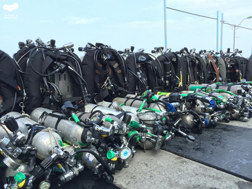 교육과정에 55m 수심의 딥다이빙이 포함되어 있어 장비가 엄청나다