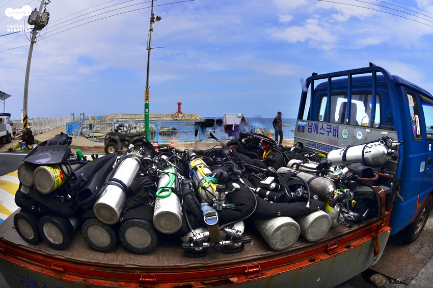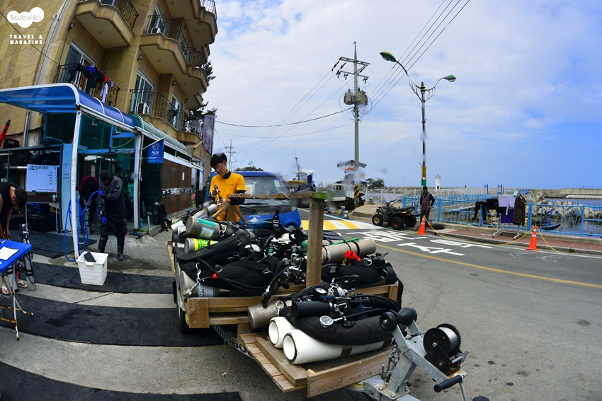남애스쿠버는 남애리조트도 함께 운영하고 있다. 장비를 옮기는 트레일러.