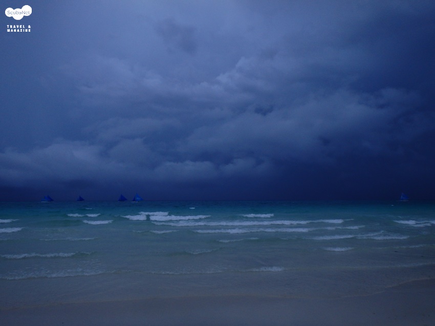 우기의 전형적인 보라카이 앞바다이런 우기의 장점도 있긴 하지만 우기에는 태풍이 필리핀 인근에서 생성되어 필리핀으로 접근하는 경우가 많습니다. 지금 글을 쓰는 이 시점에도 벌써 4개의 태풍이 만들어져서 필리핀 인근 혹은 필리핀을 관통해서 지나갔습니다. 그만큼 태풍의 영향을 많이 받는 우기 인데요. 태풍이 오면 보라카이의 경우 안전을 위해서 모든 해안이 일시적으로 폐쇄되며 모든 해안의 해양스포츠와 다이빙이 금지됩니다. 그래서 보라카이 방문 계획을 세울 때는 이런 태풍 소식에 귀를 기울이는 것도 필수인 듯 합니다.
