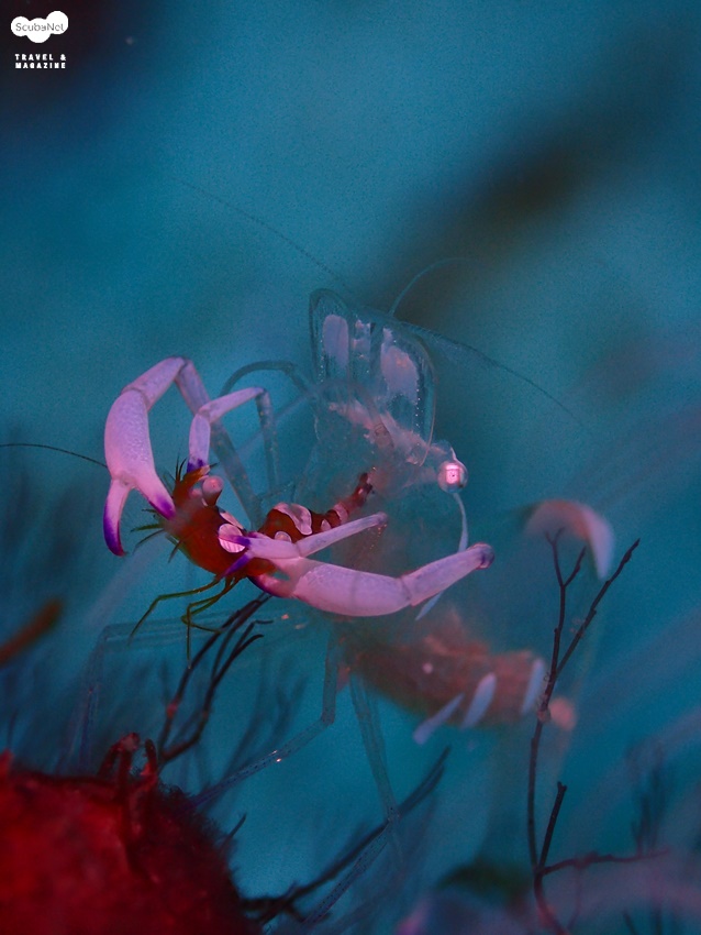 magnificient anemone shrimp가 squat shrimp를 잡아먹는 모습그렇지만 한 곳에서 살고 있는 공생 새우들끼리 잡아먹는다는 이야기는 들어본 적이 없어서 이 예상치 못한 장면을 카메라에 열심히 담았습니다. 말미잘과 공생하고 있는 두 새우인 Magnificient anemone Shrimp와 Squat Shrimp가 먹이사슬을 이루고 있는 관계라니 참 놀랍습니다. 사실 말미잘과 공생관계에 있는 두 종류의 새우가 같은 말미잘에 살며 이렇게 먹고 먹히는 관계를 이루고 있었다니 사실 처음 보고 나서 충격을 받았습니다. 지금도 말미잘 주위에서 촬영을 하다 보면 믿겨지지 않는 이 장면이 떠오르면서 혹시나 하면서 저 두 새우들을 바라보게 됩니다.