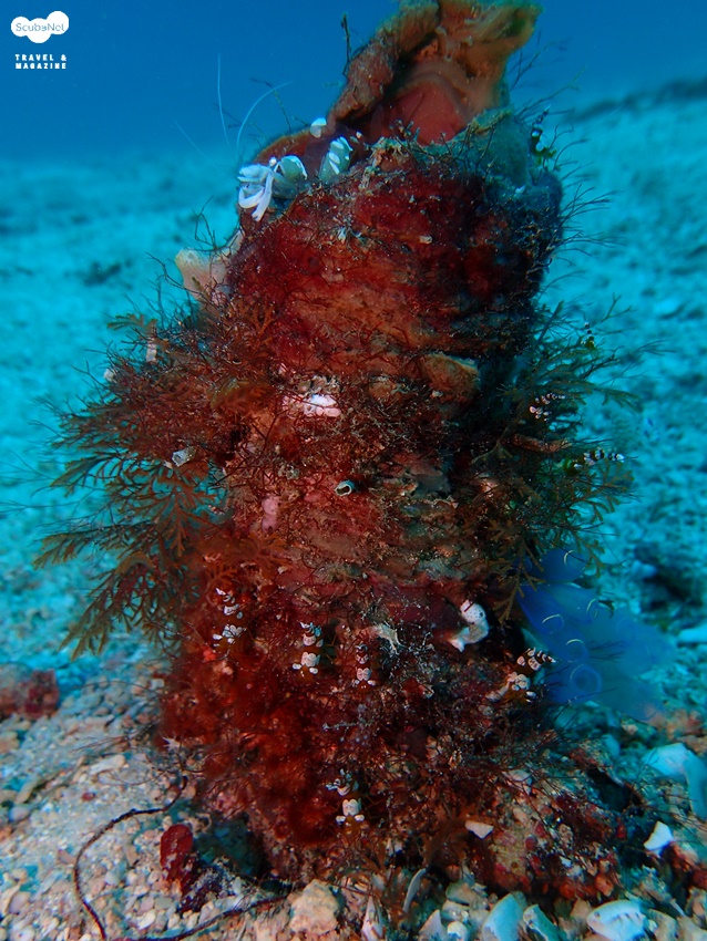 말미잘에 공생하는 clown anemonefish보통 때와 마찬가지로 수심 20미터 부근의 Tube-dwelling Anemone을 관찰하면서 Magnificient anemone Shrimp와 Squat Shrimp를 사진 촬영을 하고 있었습니다. 몇 분 동안 관찰하면서 사진촬영을 하고 있는 가운데 갑자기 Magnificient anemone Shrimp가 Squat Shrimp를 확 낚아채더니 먹기 했습니다. 갑자기 일어난 사냥 장면에 깜짝 놀랐습니다.