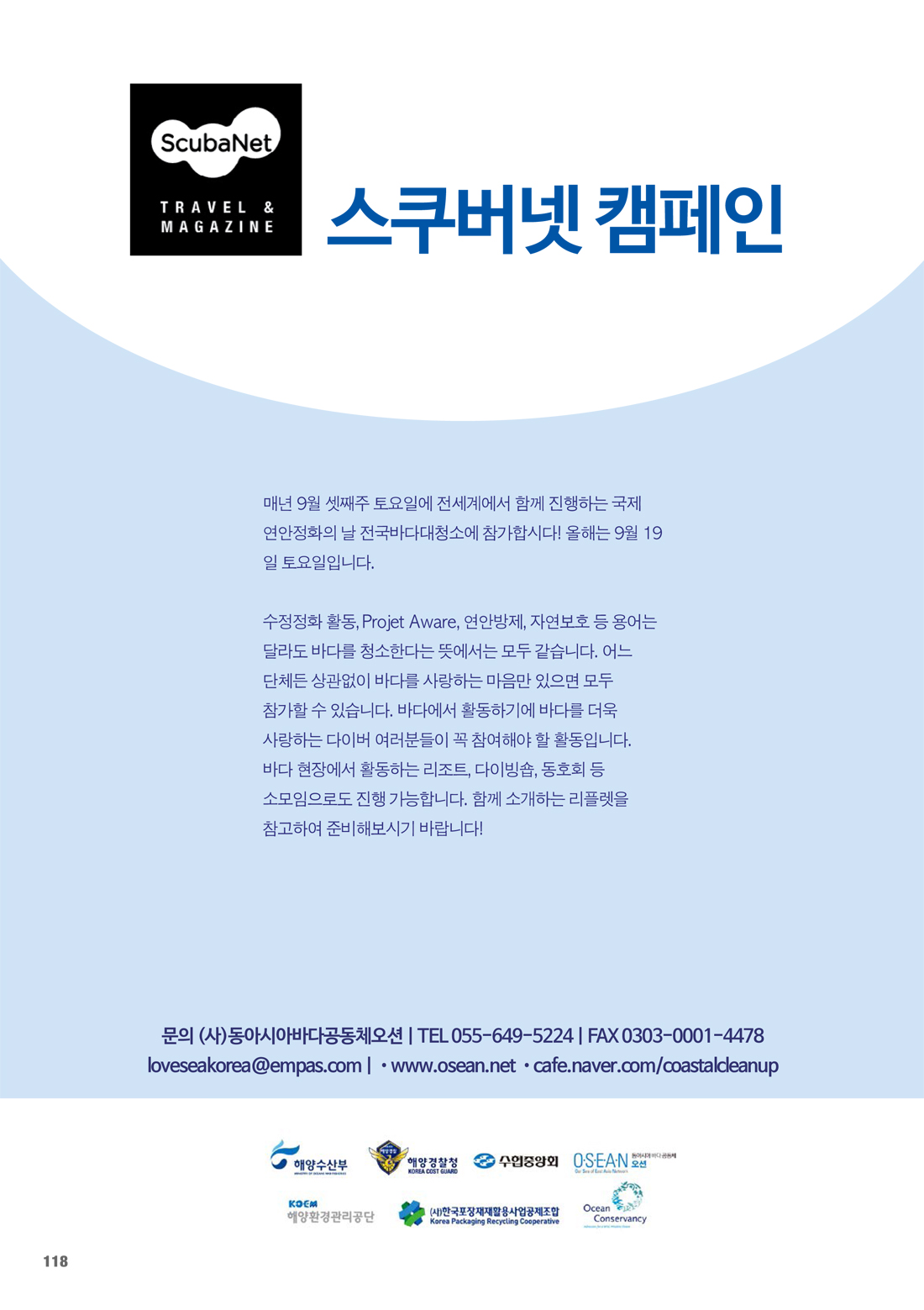 스쿠버넷 캠페인- 국제 연안정화의 날 기념