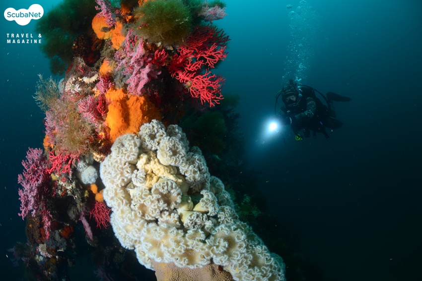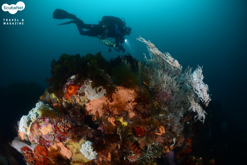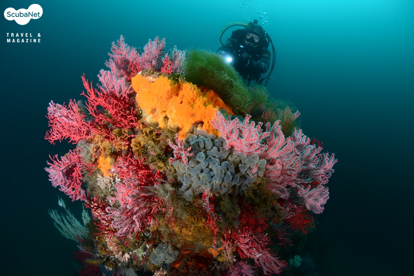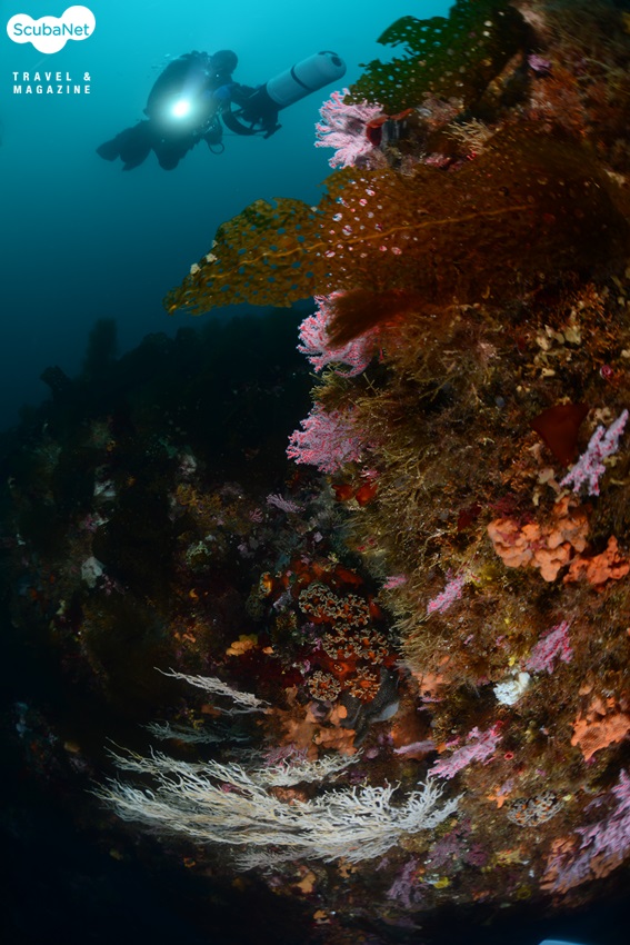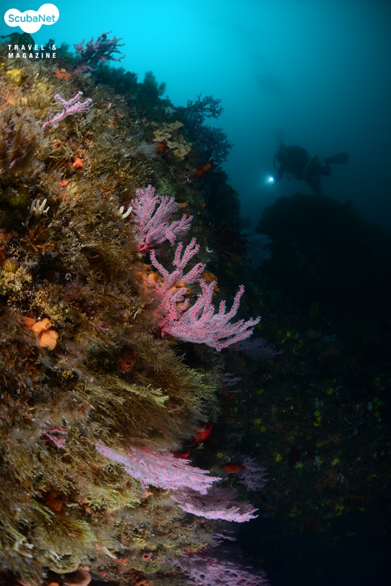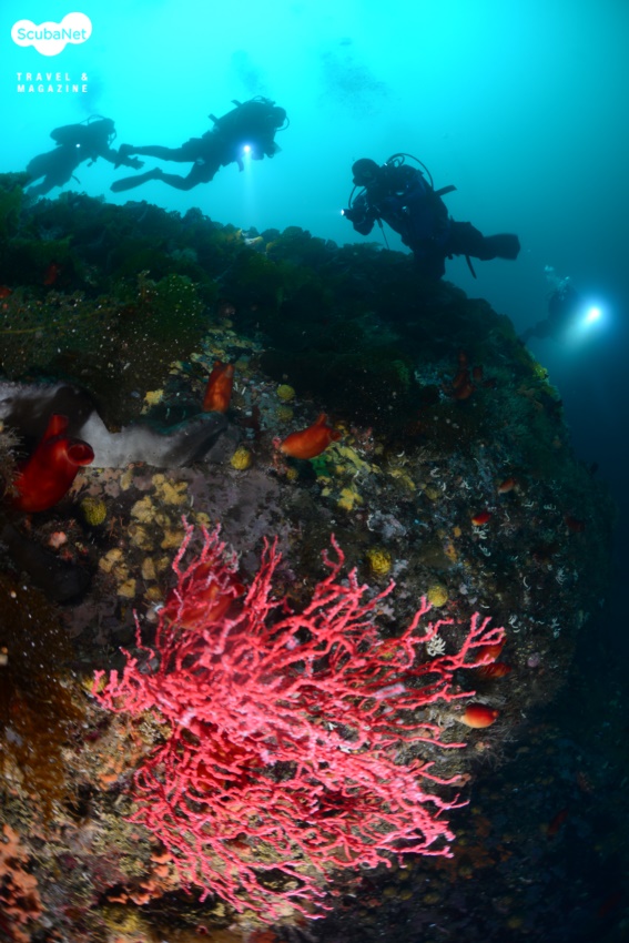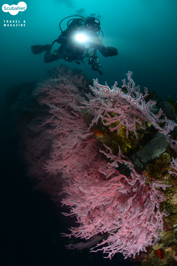 울릉도 포인트의 부채뿔산호 군락과 다이버