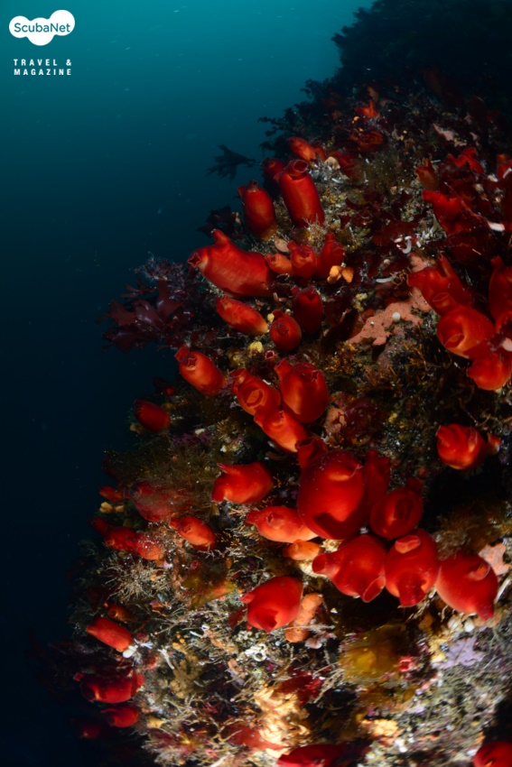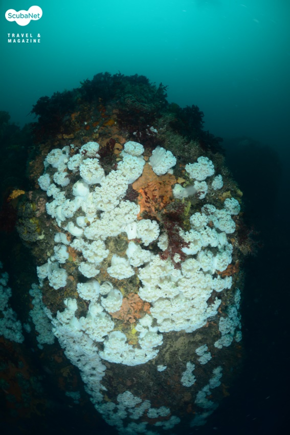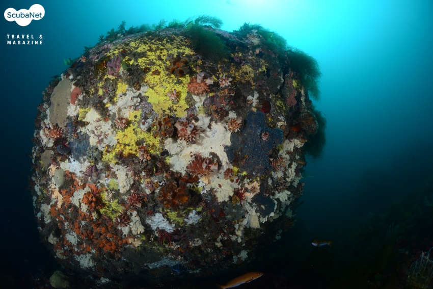 사천 작은병풍 포인트의 멍게 군락이 있는 바위