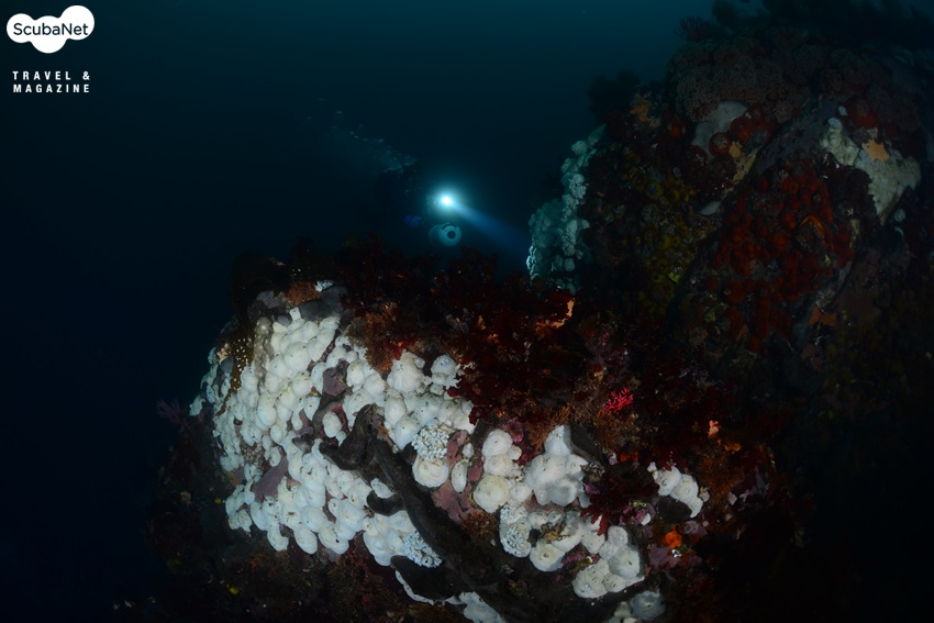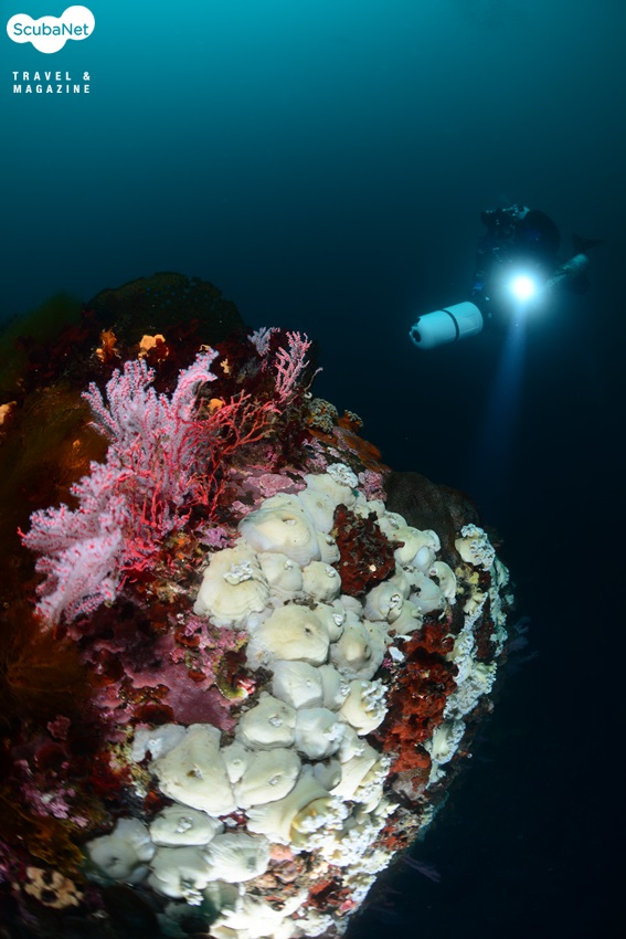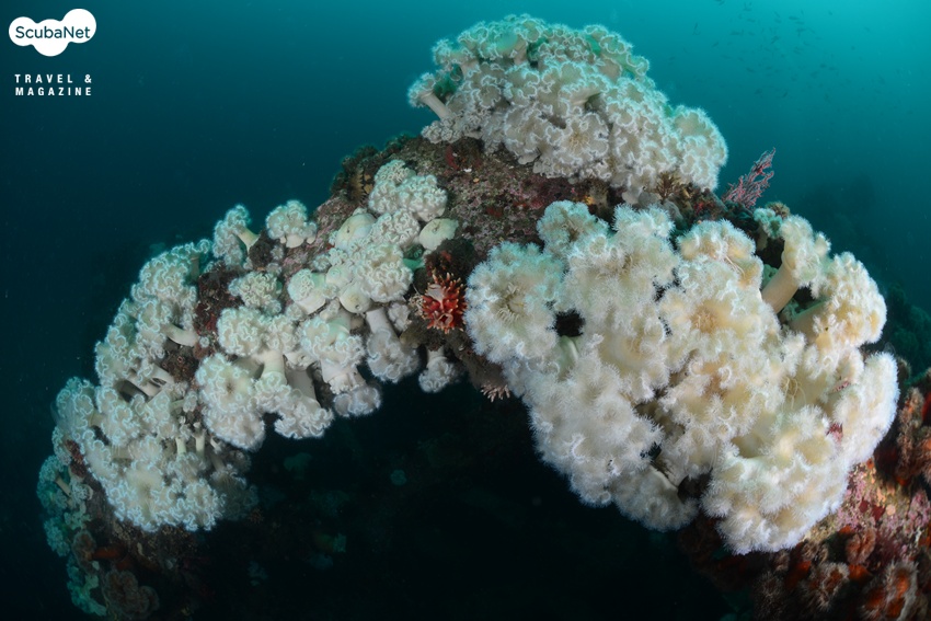 딥 다이빙 포인트의 흰색섬유세닐말미잘 군락