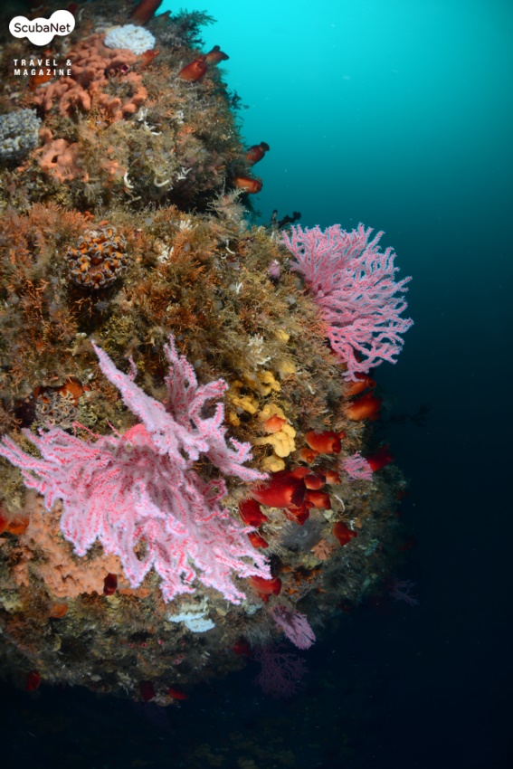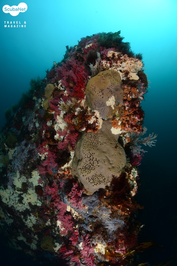 인공어초의 부착생물들이 화려한 꽃다발처럼 보인다