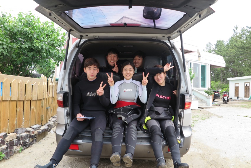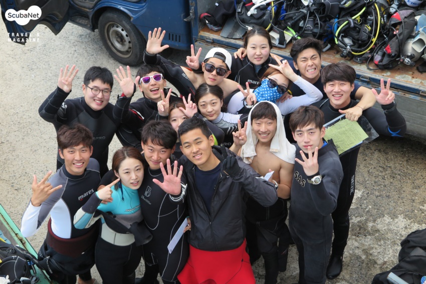 강릉의 인투더씨 다이브센터에서 ITC 동기들의 단체사진