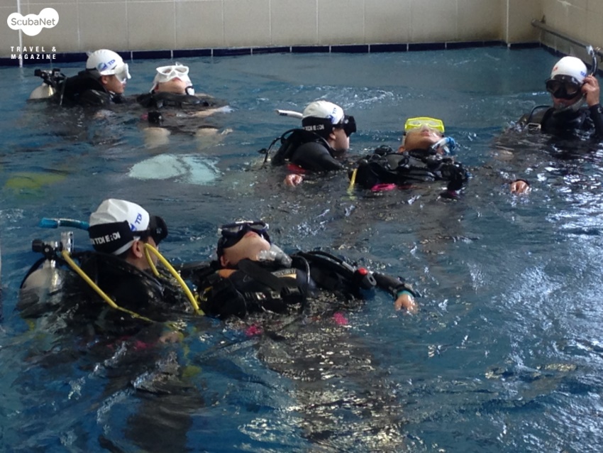 강릉국민체육센터 다이빙풀에서본격적인 일정이 시작된 이튿날. 이른 기상 시간이었음에도 불구하고, ‘시작’이라는 막연한 책임감이었을까? 다들 피곤함은 적고 긴장감으로 인해 다들 가뿐한 모습이었다. 그렇게 우리는 교육 장소이자 시험장소가 될 강릉국민체육센터로 향했고 필수적인 수중기술들을 하나씩 되짚으며 첫 교육이 시작됐다. 이미 100로그를 채우고 다양한 환경에서 다이빙의 경험이 있는 친구들이기 때문에 어느 정도 수중기술은 갖추고 있었지만, 전문적인 SDI강사가 되기 위해서는 통일된 기술을 갖는 것이 중요하기 때문이었다. 또한, 자신이 할 줄 아는 것과 앞으로 교육생을 맞아 시범을 보이며 가르친다는 것은 다르기 때문에 교육에 있어 기본적이며 중요한 과정 중 하나였다.