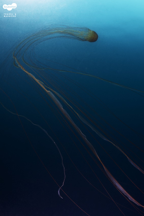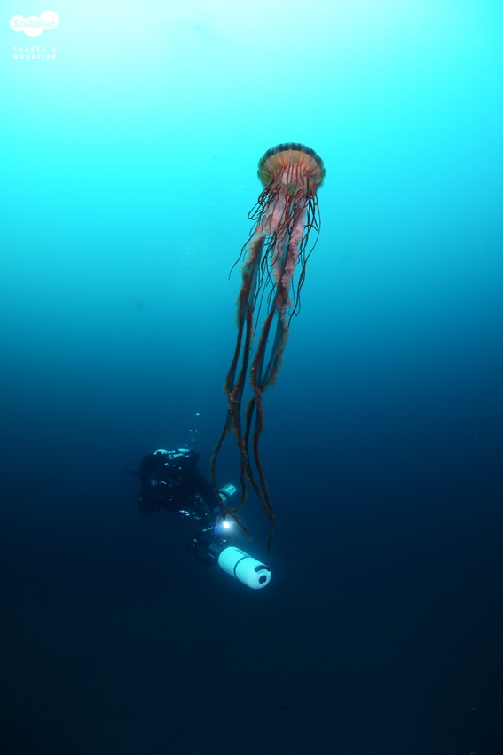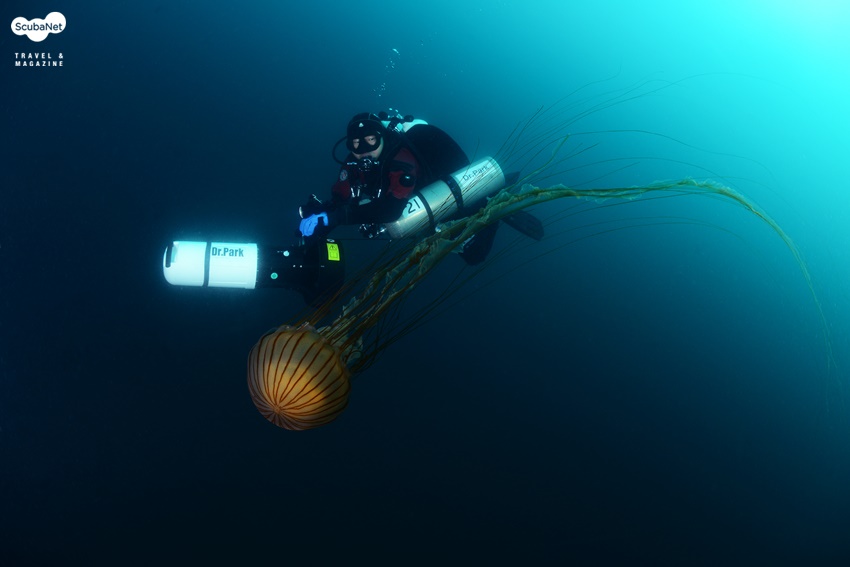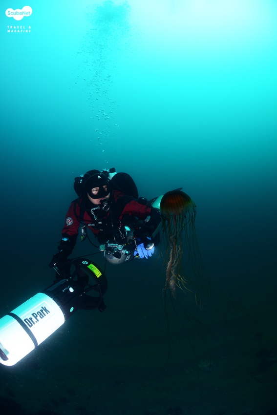 스쿠터를 휴대한 박건욱 강사가 암반을 벗어나 모래지역을 돌아다녀 봤지만 어초를 찾지는 못했다. 대신 하늘을 뒤덮은 까나리(양미리) 무리를 만났고, 커튼원양해파리들을 숱하게 만나 사진 촬영을 할 수 있었다. 엄청나게 긴 촉수를 달고 다니는 녀석도 있었고, 많을 때는 한꺼번에 3마리나 화면에 들어오기도 했다. 녀석들의 무시무시한 촉수가 닿지 않도록 조심해서 상승해야 했다.
