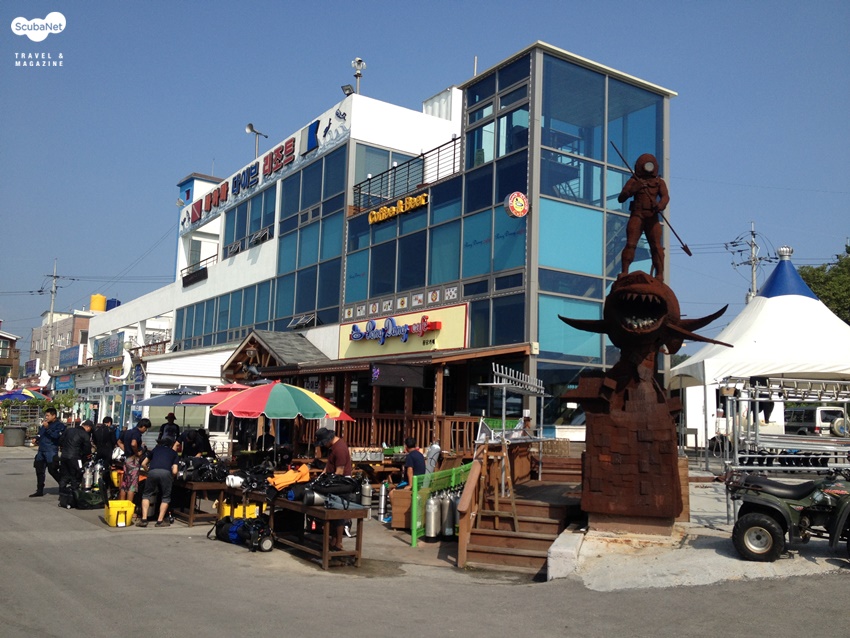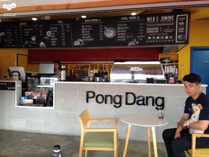 드라이슈트를 입고 보트를 기다리는 동안 시원한 아이스커피로 더위를 식힐 수 있었다그리고 중식집에서 자장면과 탕수육을 시켜 먹을 수도 있다. 수면휴식 시간 동안 이렇게 식사를 하고, 느긋하게 쉬면서 다음 다이빙 준비를 하면 된다. 바하마다이브리조트와 붙어 있는 커피숍 퐁당까페는 수면휴식시간에 이용하기 좋은 곳이다.