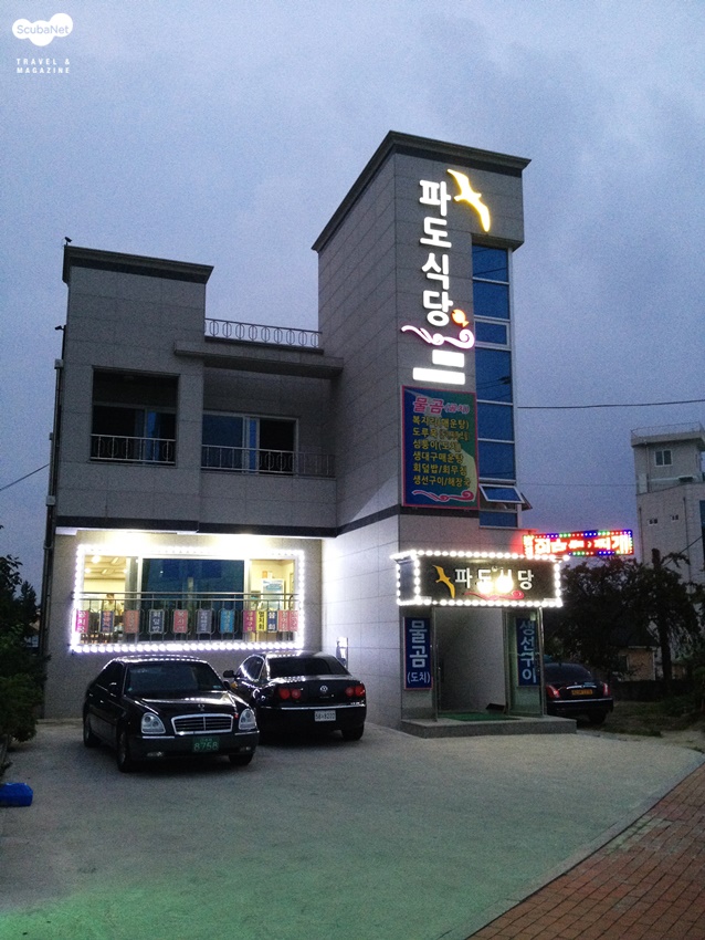 바하마다이브리조트의 김창문 대표는 주문진이 고향이다. 그래서 리조트를 찾는 다이버들에게 강릉사람들이 찾는 맛집들을 안내해준다. 장치찜이 맛있는 월성식당, 소머리국밥이 맛있는 철뚝소머리집, 생선구이와 조림이 맛있는 삼미식당 등이 모두 김창문 대표가 소개해준 집이다. 이날은 주문진의 파도식당을 찾았다.