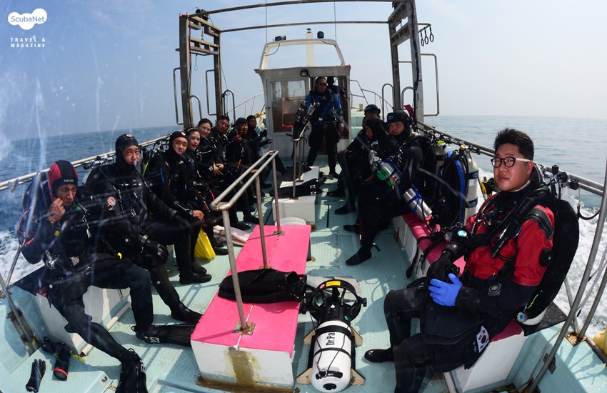 다이빙이 편안한 리프트가 달린 보트바하마다이브리조트는 콤비보트와 FRP 보트 등 2척의 다이빙 보트를 운영하기 때문에 다이버들의 수준과 규모에 따라서 보트를 선택적으로 운용한다. 깊고 시원한 곳으로 가자는 황영민 강사 팀과 합류하여 리프트가 달려있는 FRP 보트를 탑승했는데 대부분 더블탱크에 드라이슈트를 착용한 다이버들이었고, 웻슈트에 싱글 탱크를 착용한 다이버도 일부 있었다.