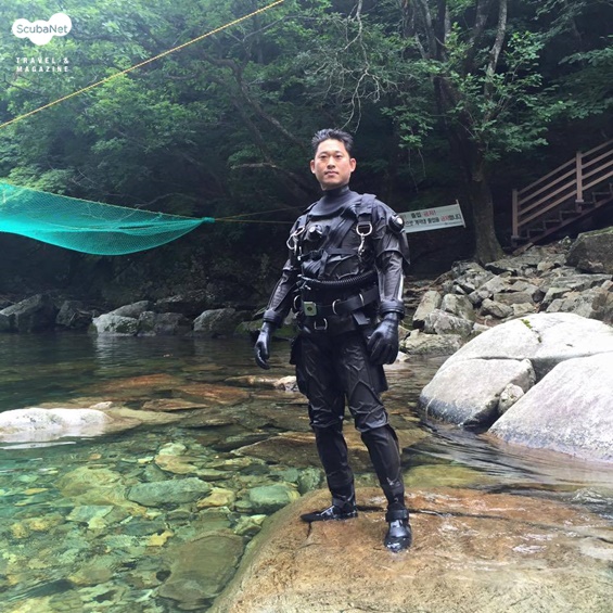 사이드마운트 다이빙을 준비하는 다이버