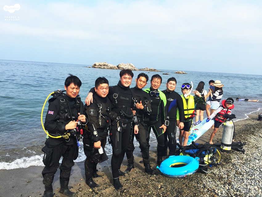 가족들의 휴가를 겸해서 문무대왕 수중릉 탐사에 나선 스쿠버라인 회원들