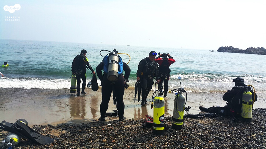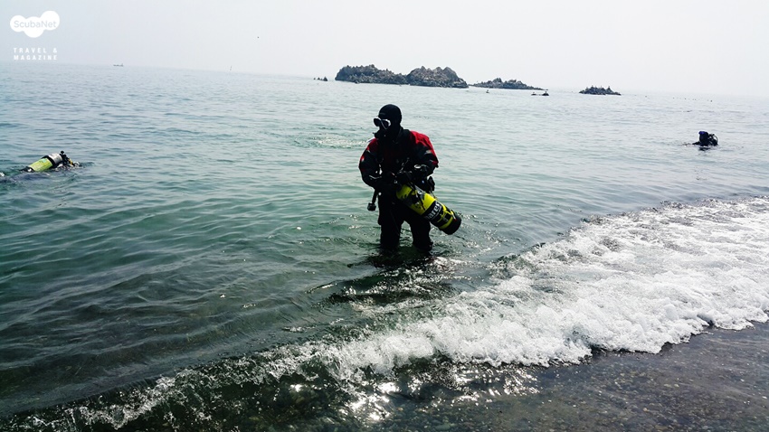 입수를 준비하는 스쿠버라인 회원들