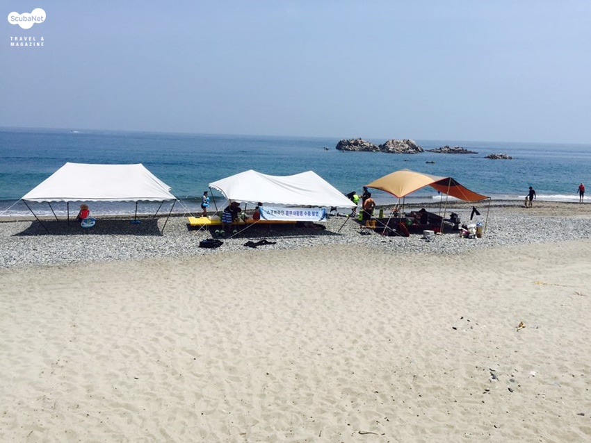 해수욕장에 설치된 천막을 빌렸다