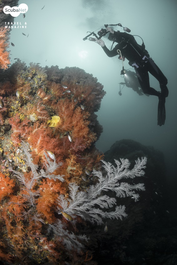 가을의 제주 바다우리나라 바다가 다 그렇지만 특히 제주 바다는 9월~10월이 최고의 수중세계를 보여준다. 1년중 수온이 가장 따뜻하며, 시야가 청명해지는 계절이다. 푸르른 가을하늘처럼 바닷속도 맑고 푸르다. 따뜻한 환경 속에서 수중생물은 산란철을 맞이하여 번식을 위하여 제 나름의 방법으로 바다를 풍요롭게 하고 있다. 풍요로운 감태들 사이에서 화려한 연산호들이 꽃을 피우고, 수많은 자리돔이 군무를 추고, 주걱치와 호박돔이 산호 사이를 헤엄치며, 솔배감펭이 멋진 날개를 활짝 펴고 있는 아름다운 제주의 수중세계. 이 아름다운 제주바다 속에서 마음에 맞는 벗들과 함께 부대낄 것 없는 자유로운 영혼으로 마음껏 수중촬영을 하였다.