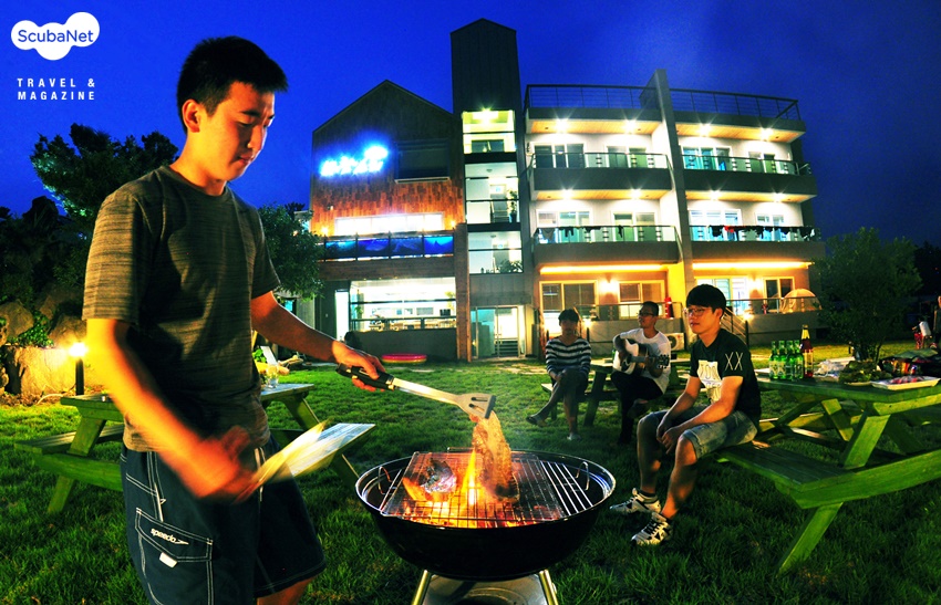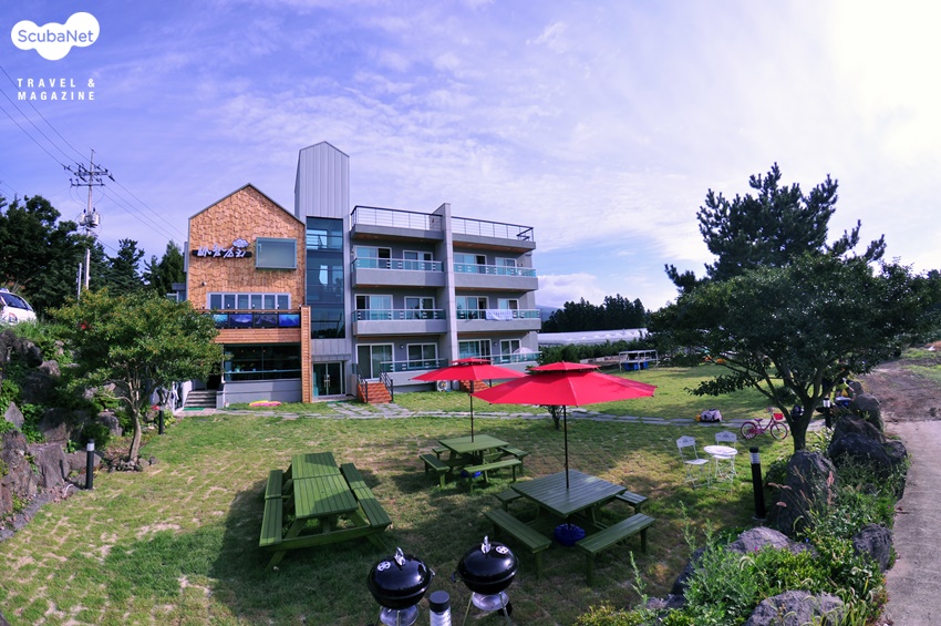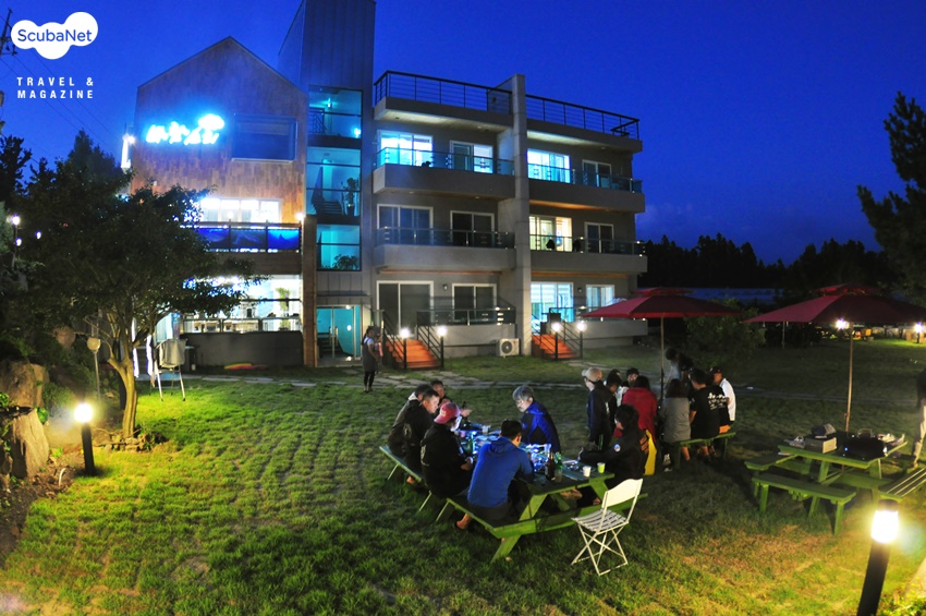 푸른 잔디가 깔려있는 넓은 정원은 하루의 다이빙을 마치고 난 다이버를 위한 바베큐 파티를 하기에 좋다. 잔디를 밟고, 제주바람을 맞으며 즐기는 저녁시간은 그날의 피로를 풀기에 적당하다.