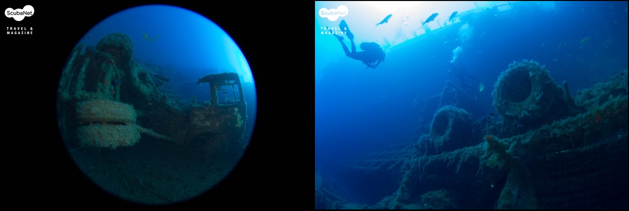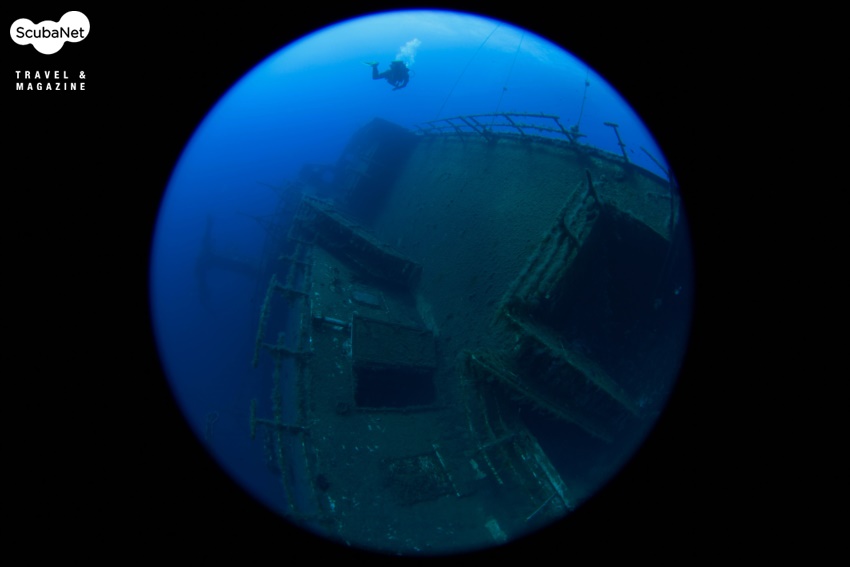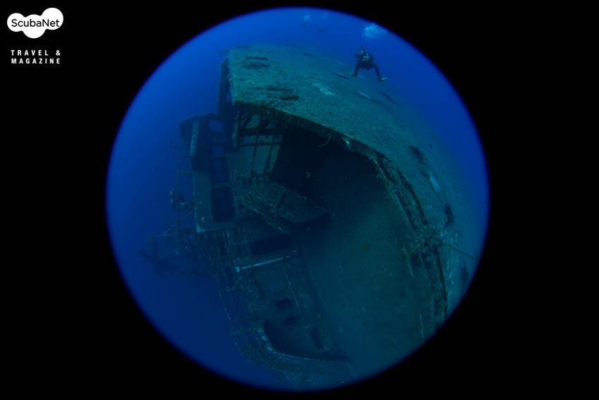 어안렌즈로 촬영한 난파선첫째 날은 난파선 외관을 주로 관찰하였는데 후미를 주로 관찰하였다.엄청난 크기의 프로펠러가 인상적이었다.