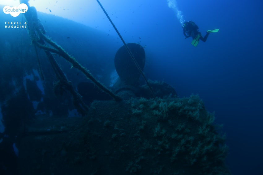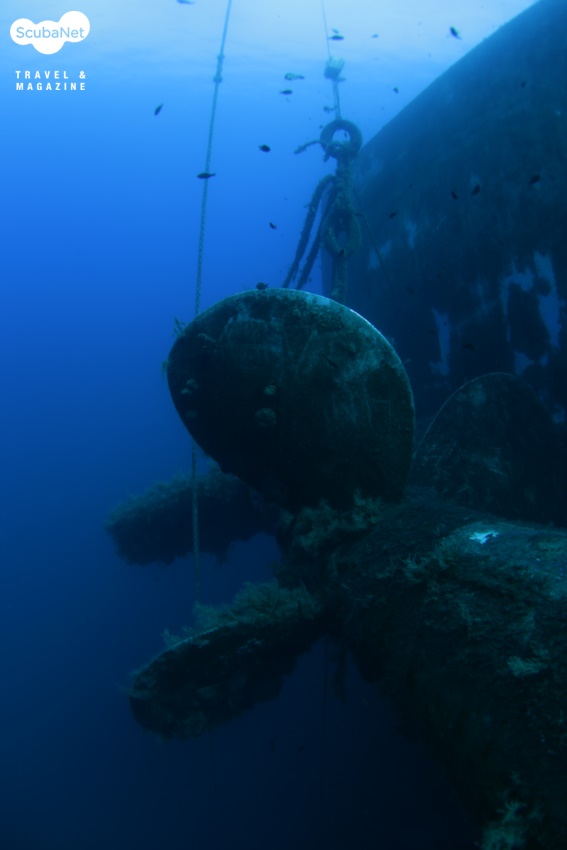 제노비아 난파선의 거대한 프로펠러알파다이버스는 오전에 보트 다이빙으로 난파선 다이빙 2회, 오후에는 비치 다이빙을 2회 진행하고 있었다. 제노비아 난파선이 가라앉아 있는 바닥 수심은 40m 정도이고, 화물칸, 기관실, 객실 등은 빛이 거의 들어오지 않는 공간이기 때문에 딥다이빙 및 난파선 스페셜티 보유 여부를 확인하고 다이빙 코스를 정한다고 했다.