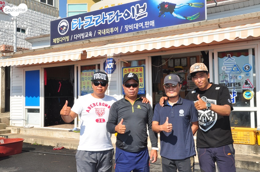여름 성수기가 끝난 다음에 다이버들이 많이 찾는 주말을 피해서 물때가 좋을 때를 골라 서귀포시 법환리의 타크라 다이브를 찾았다. 법환리를 대표하는 다이빙은 범섬에 상륙하는 섬 다이빙도 있지만 예전부터 다이버들 사이에는 보트 다이빙으로 찾아가는 기차바위 다이빙을 최고로 손을 꼽아왔다. 법환리 앞바다를 손바닥 보듯 환하게 알고 있는 김성일 대표가 안내한다면 기차바위 포인트 중에서도 가장 멋있는 곳으로 데려다 줄 것으로 믿었기에 기대를 안고 타크라 다이브로 갔다. 다이버들을 섬으로 데려다 줘야 하는 바쁜 시기만 피한다면 타크라 다이브에서는 2척의 다이빙 전용선 중 하나를 이용해서 언제든지 편안하게 보트 다이빙을 안내하고 있다.