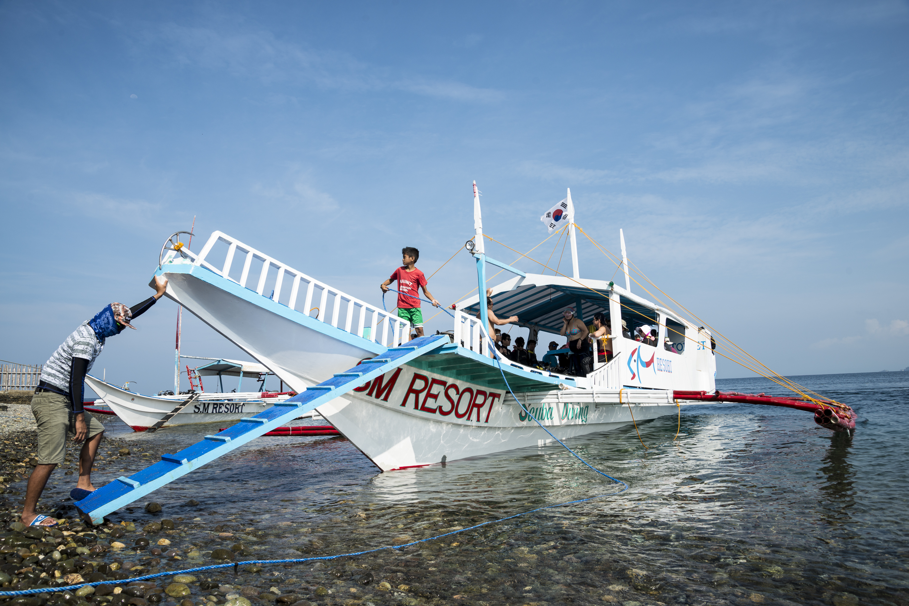 SM다이빙 리조트도 객실을 증축하고, 기존 객실을 리노베이션 하면서 새로운 방카 보트를 도입하였다. 20명 정도의 다이버가 편하게 다이빙할 수 있고, 화장실과 주방이 있는 제법 규모가 큰 방카 보트다. 방카 보트의 갑판이 넓어 장비의 착용이 용이하며, 자이언트 스트라이드로 입수하기에 편하다. 좌우의 넓은 의자는 많은 다이버가 편하게 이동할 수 있으며, 수면휴식하기에도 좋다.