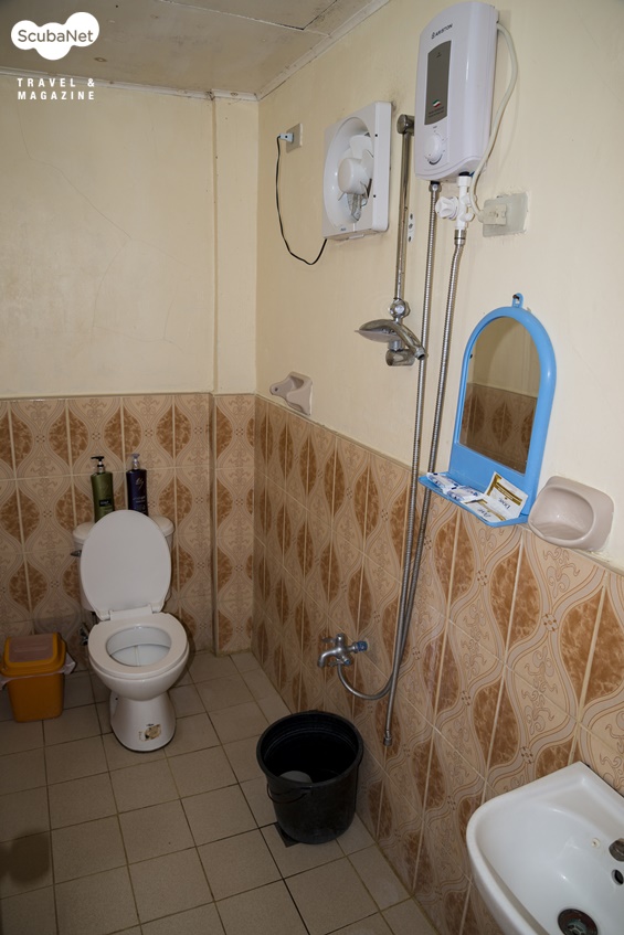 쾌적한 객실올해 초에 리조트 입구에 2층으로 객실동을 증축하였다. 기존에는 객실 수도 적었고, 노후된 시설로 인하여 젊은 다이버들이 선호하지 않았다. 새로 증축한 객실은 고급스럽지는 않지만 쾌적하고 아늑하였다. 창문으로 따사로운 빛이 들어오는 객실은 트윈베드형으로 에어컨룸이다. 화장실에는 순간온수기가 각각 설치되어 더운물 샤워가 가능하다.