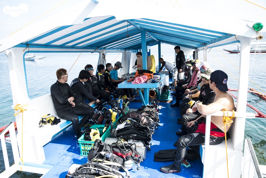 편리한 다이빙 보트아닐라오의 다이빙 보트는 작은 방카 보트가 대부분이다. 이동 거리가 멀지 않은 아닐라오의 지역적 특성 때문인 것 같다. 그래서 적은 수의 다이버 그룹이 다이빙하기에 적당하다. 아닐라오의 리조트가 대부분 슬로프 형태의 해변에 있기 때문에 접안하기에 용이하고, 다이버를 픽업하기에도 좋다. 하지만 보트가 비좁아서 수면휴식하기에 편하지 않다. 세부나 보홀 지역의 방카 보트는 먼 거리를 다니기 좋게 규모가 커서 큰 그룹의 다이버들이 편하게 한 배에서 다이빙을 할 수 있다.