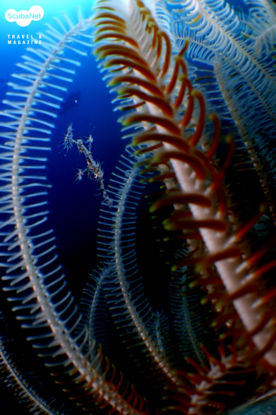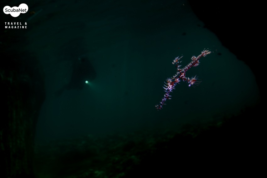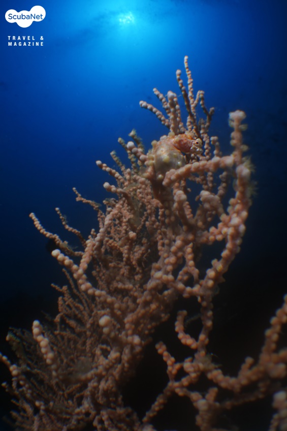 피그미 해마. 피그미 해마의 서식지를 고려하면 촬영하는 것이 쉽지 않은 일이다. 해가 뜰 무렵 촬영