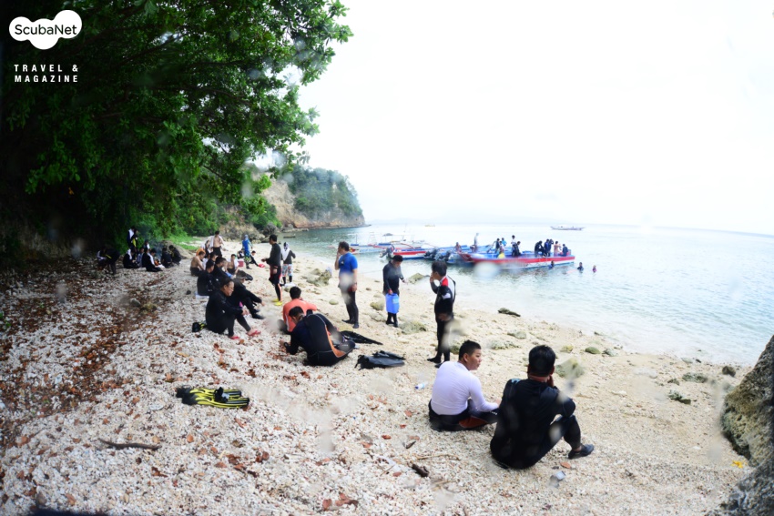 시난디간 비치에서 수면휴식원래 1회 다이빙을 하고 리조트로 돌아가야 하지만 높은 파도를 뚫고 갔다가 다시 오는 것보다는 그냥 시난디간 비치에서 수면휴식을 취하고, 그 동안 스태프들이 장비의 탱크만 갈아서 오기로 했다. 시난디간 비치에는 이미 다른 리조트의 다이버들이 잔뜩 자리를 지키고 있었다