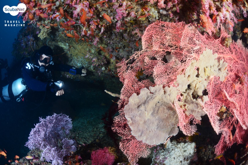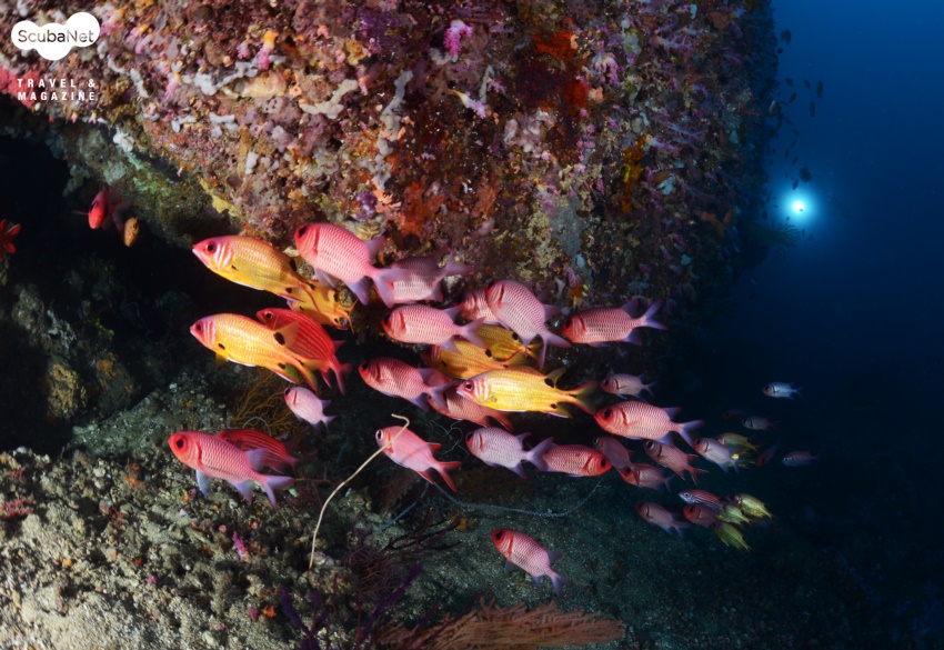 아톨 옆의 월에는 부채산호들이 멋지게 자리잡고 있어서 사진을 촬영하는 재미가 있었다. 하지만 예전에 많았던 연산호들이 그리 많지 않아 안티아스들이 꽃밭의 나비처럼 날아다니던 당시의 느낌을 찾아볼 수가 없었다. 그럼에도 불구하고 아톨은 여전히 포토제닉한 경치들을 많이 품고 있었다. 두 강사들을 번갈아 모델로 삼아 촬영을 하는데 정말 편하고, 즐거웠다.