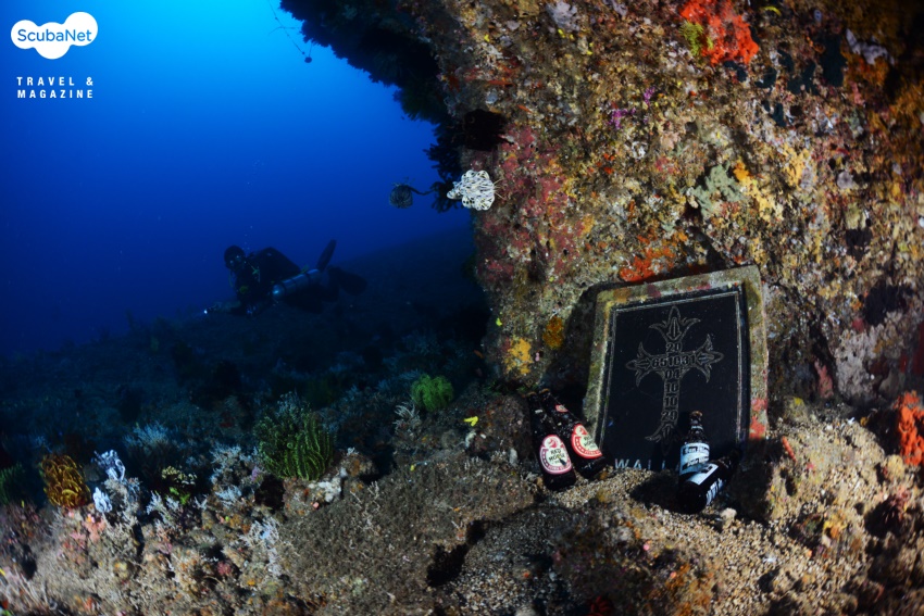 파라다이스 다이브 리조트와 태풍의 사방비치일부 다이버들은 시난디간 월에서 다이빙을 했고, 상급 다이버들과 함께 터틀락(Tuttle Rock)으로 향했다. 슬로프가 끝나는 수심 40m 바닥에 바위가 하나 솟아 있었는데 그것이 터틀락이다. 바위 아래에는 홍콩 다이버들이 가져다 놓았다는 위령비와 빈 맥주병들이 놓여있었다. 누군가를 추모하는 동료들의 마음이 느껴졌다. 가끔 환도상어가 나타나는 곳이라고는 했지만 보지는 못했고, 터틀락을 한 바퀴 돌아 다시 슬로프를 따라 다시 상승했다.