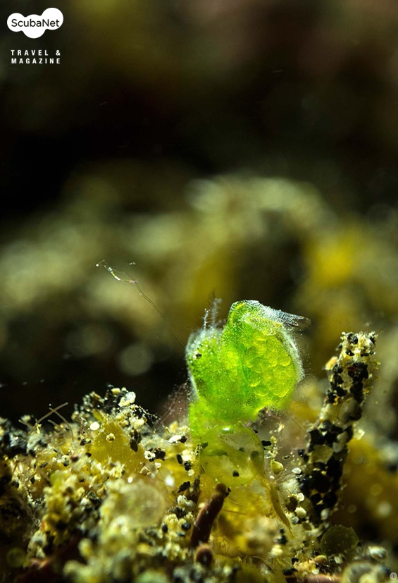 톱날새우Sawblade shrimp를 지속광을 이용하여 백라이팅으로 촬영하였다. 지속광의 빛이 강하지 않고 타겟라이트 빛이 있어 백라이팅의 효과는 잘 살지 않았다.
