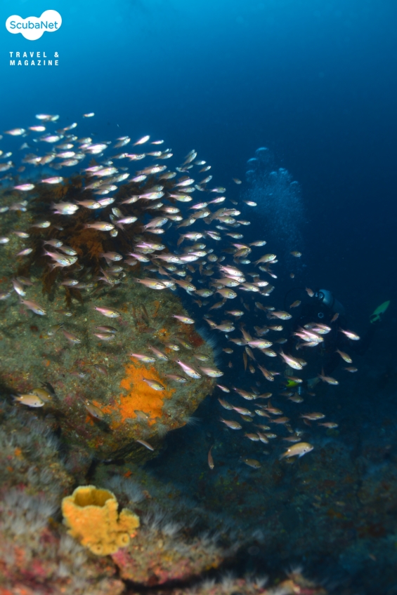 줄도화돔 무리고통스러운 압박은 사람을 지치고 힘들게 하지만 다이버에게 있어 어디론가 떠나보고 싶어진다는 것, 갈 곳이 있어 그날을 손꼽아 기다려보며 계획을 세운다는 것은 땀 흘려 일하는 보상이요 온전히 이 세상을 헤쳐 나갈 수 있도록 격려해주는 보상과도 같을 것이다.
