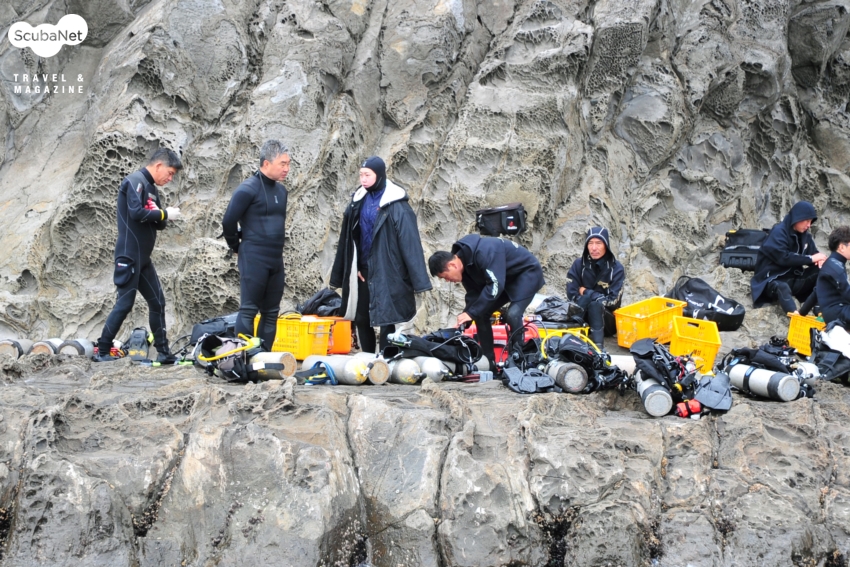 범환 항에서 다이빙 전용선에 장비를 싣고 도착한 범섬은 휴일임에도 한산한 모습이었다. 예전의 내 기억에는 장비를 내려놓을 수 있는 공간에는 여지없이 다이버들로 북적이던 그런 모습이었는데 못내 아쉽고 저물어가는 가을만큼이나 황량함이 가득했다.