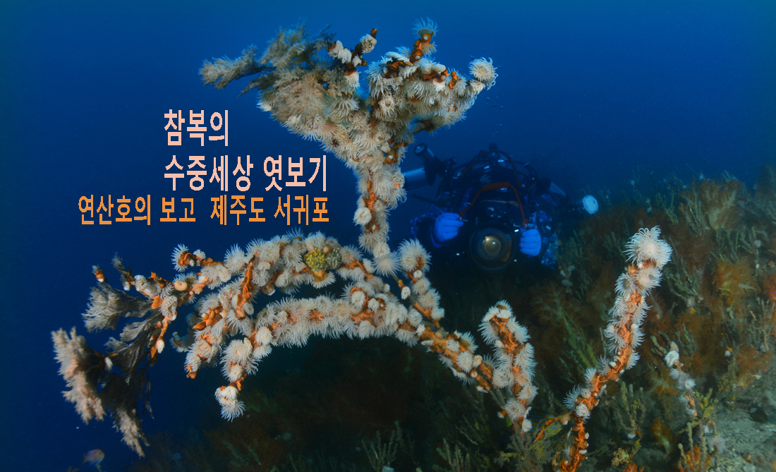 섬 한개창 깊은 수심에 있는 백송 가지를 뒤덮은 담홍말미잘 군락.작년 이 맘 때 늘 그리워하던 제주를 찾은 적이 있었다. 연중 1~2 회도 감지덕지의 환경이라 투어에 임하는 마음은 어디 멀고먼 해외투어 못지않게 설레듯 단단히 준비해서 가고픈 그런 곳이 제주도 투어다.그리 길지도 않은 2박 3일의 일정이었기에 다이빙 횟수는 고작 3~4회에 만족해야 하는 빠듯한 일정이 못내 아쉽기만 하다.