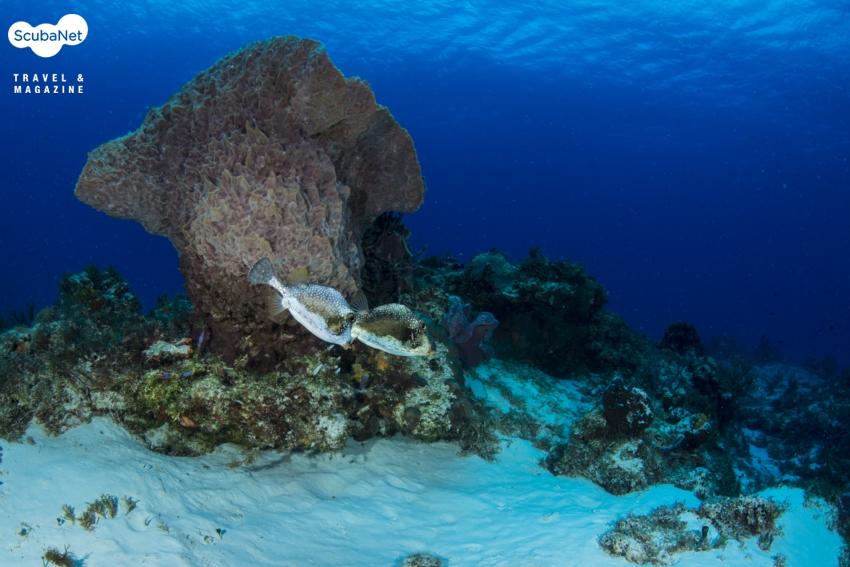 코주멜에만 있는 Splendid Toadfish는 턱에 난 수염을 가지런히 하고, 암반 아래 좁은 틈 속에 자리잡고 웅크리고 있다. 조류를 피해 바위 뒤에 자리를 잡고 피사체를 찾아 셔터를 누른다.