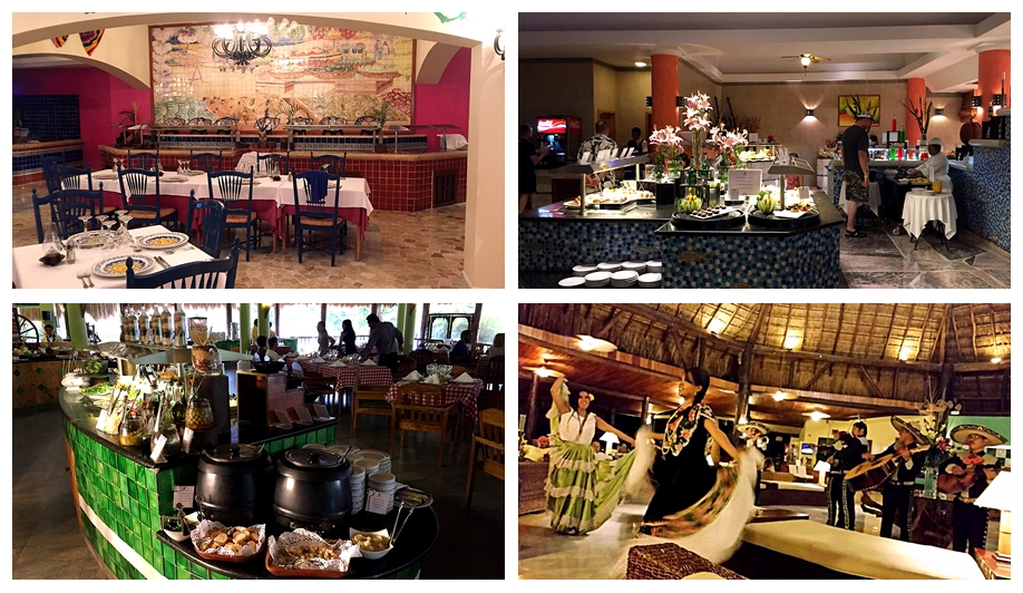 레스토랑은 3개로 메인 뷔페 레스토랑은 아침과 저녁을 제공하고, 점심은 수영장 옆에 있는 비치 레스토랑에서 제공한다. 저녁은 뷔페 레스토랑에서 제공되며, 다른 분위기를 원하면 큼직한 스테이크와 와인을 제공하는 비치 레스토랑, 멕시코 음식을 코스로 제공하는 멕시칸 레스토랑 중 선택하여 사전에 예약하면 된다. 뷔페 레스토랑은 요일 별로 다양한 음식을 제공하며, 멕시코식, 캐리비안식, 이태리식 등이 있지만 어차피 우리에게는 다 같은 양식이다.