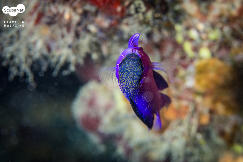 큼직한 Spider crab은 지천에 널려있다. 다양한 공생새우, 해마, 갯민숭달팽이, 개오지 등이 제법 눈에 띈다. 라이온피시 유어, 담셀, 안티아스, 베도라치 등 귀여운 물고기들이 형형색색 멋진 모습을 자랑하며 찍어달라고 한다. 리프 아래 구석진 곳에서 기다란 지느러미를 나풀대는 스팟티드드럼피시Spotted Drumfish 유어를 만나 다양한 시도를 해본다.