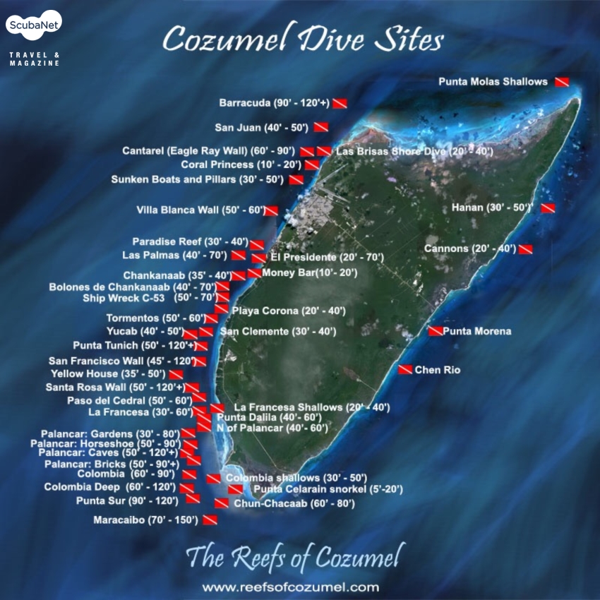 멕시코 칸쿤 지역의 바다 다이빙과 세노테 다이빙에 이어 휴양지로 유명한 코주멜 섬의 다이빙을 소개한다. 칸쿤 남쪽의 플라야 델 카르멘에서 배로 1시간 이내에 갈 수 있는 코주멜은 섬 전체가 휴양지로 개발이 된 곳이다. 항구가 있는 다운타운을 중심으로 해안선을 따라 다양한 리조트가 자리 잡고 있다. 각각의 리조트에는 대부분 다이빙센터가 있으며, 다운타운에도 다이빙 숍이 여러 개 있다.