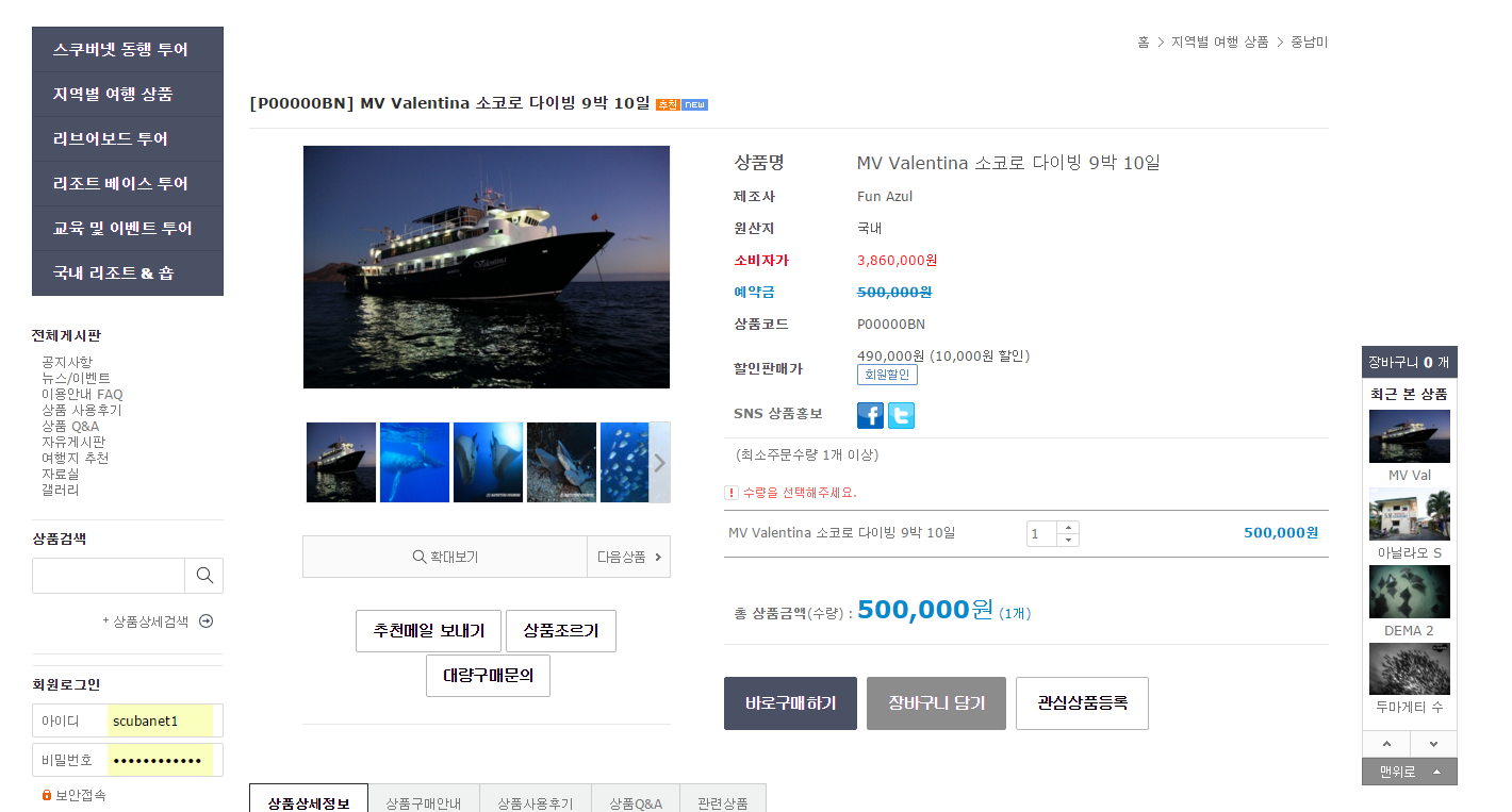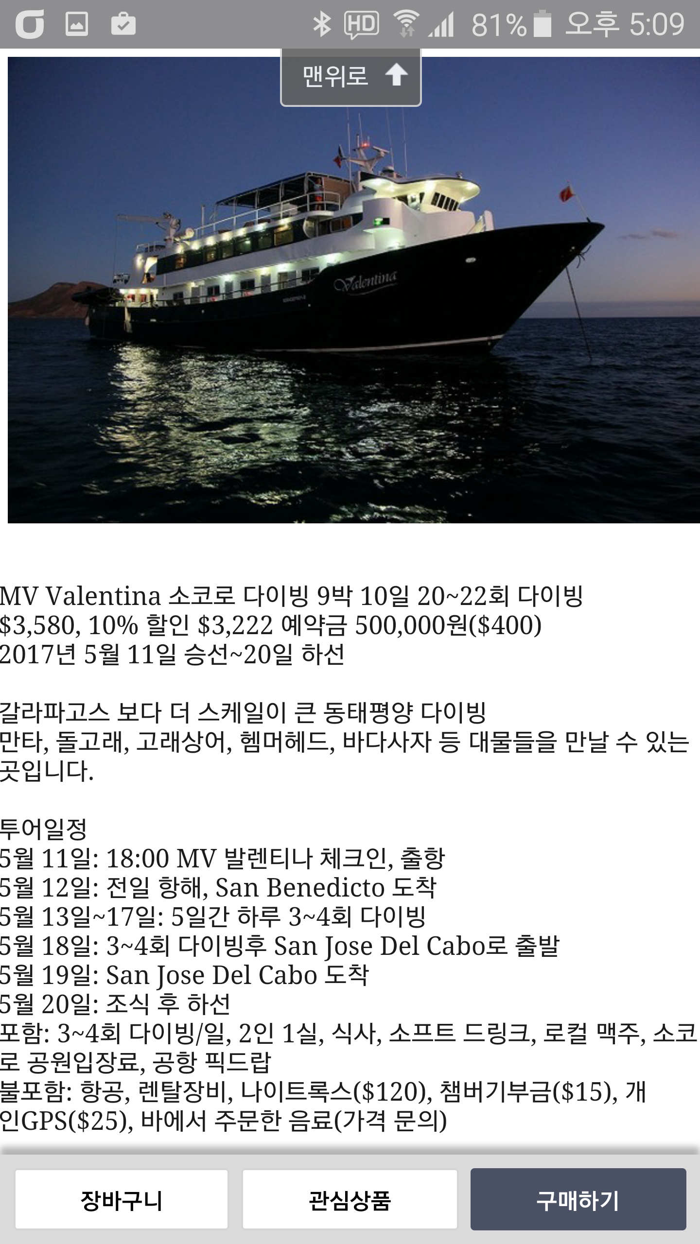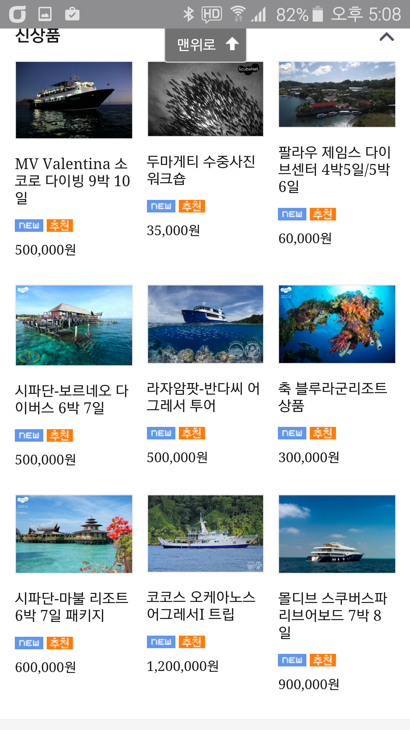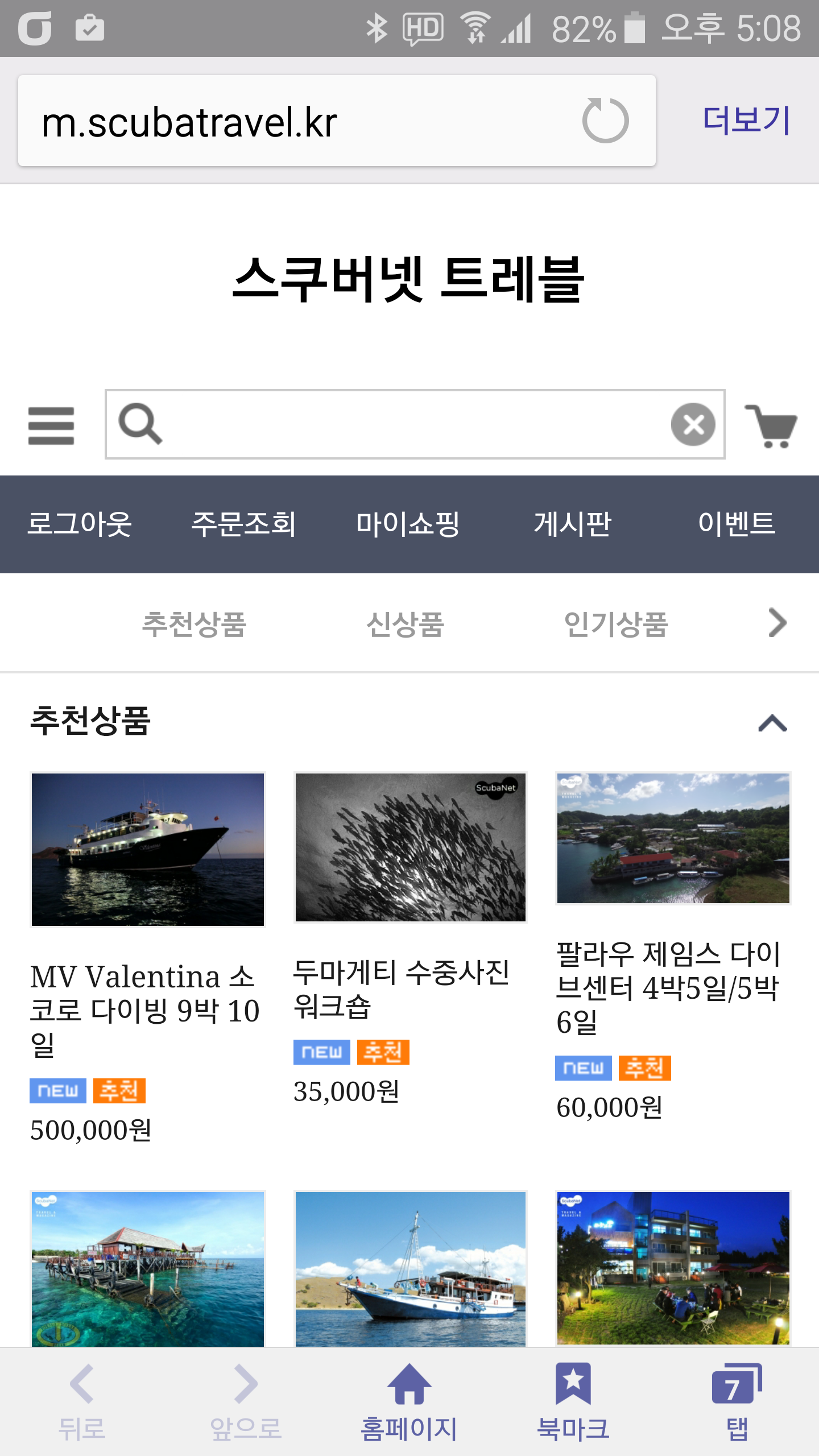 스쿠버넷에서는 스쿠버다이빙 여행상품을 전문적으로 소개하는 여행쇼핑몰을 스쿠버트레블(http://scubatravel.kr)을 오픈했습니다. 데스크탑 버전과 모바일 버전 모두 이용가능합니다. 단 모바일 버전에서는 투어의 예약금만 노출됨을 주의해야 합니다. 투어비는 리브어보드 보트 및 리조트의 이용금액이며, 예약을 위해 필요한 금액을 예약금으로 소개하고 있습니다. 이 예약금은 카드 결제가 가능합니다.