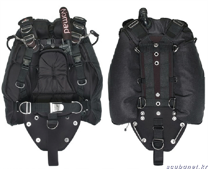 ● 트림과 부력조절이 편하다: 장비와 하네스를 개개인의 체형이나 크기에 맞게 조절할 수 있으며, 탱크가 양 측면에 있어서 밸런스를 유지하기가 좋다.