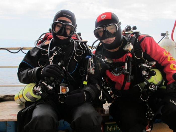 테크니컬 다이빙으로 섭바위 탐사를 준비하는 다이버들